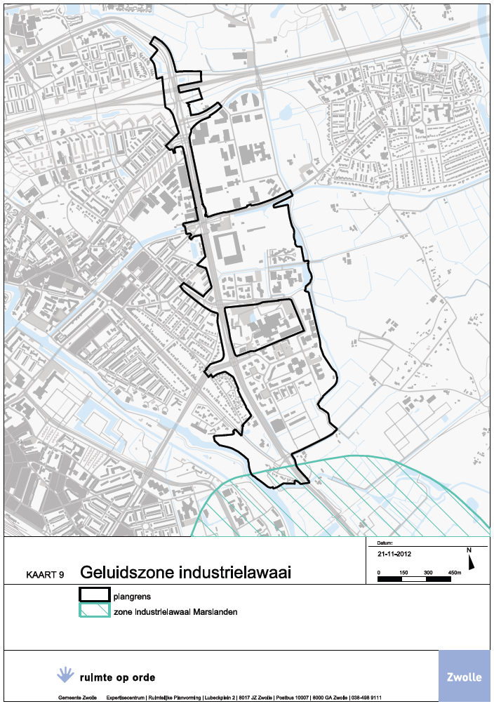 Een deel van het plangebied van de Ceintuurbaanzone (omgeving Wipstrikpark) valt binnen de bestaande geluidszone van het industrieterrein Marslanden. De contour van de geldende geluidszone van industrieterrein Marslanden is op kaart 9 weergegeven. Er worden geen wijzigingen in de bestaande zonegrens aangebracht.