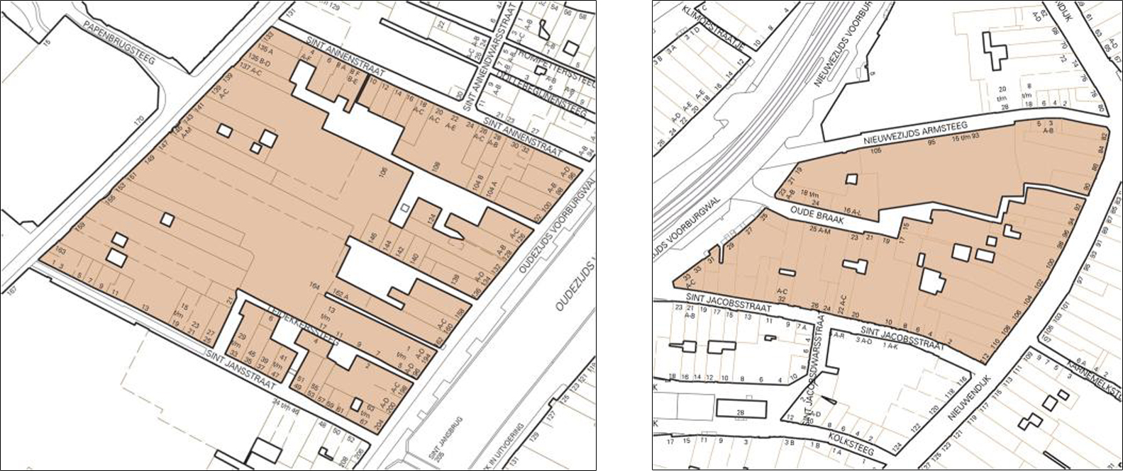 4. Herverkaveld bouwblok (1587) tussen Oudezijds Achterburgwal en Kloveniersburgwal en strokenverkaveling aan de nieuwe