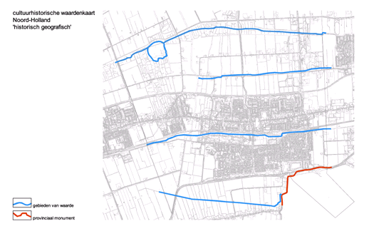Zoals in het hoofdstuk landschap is aangegeven is veel van de landschappelijk karakteristieke elementen met de ruilverkaveling verdwenen. Toch zijn er nog in cultuurhistorisch opzicht waardevolle elementen aanwezig, die een beeld geven van de historische ontwikkeling. Dit geldt op de eerste plaats voor de parallel aan de Streekweg lopende watergangen: de Kadijk, de Gouwe en de Tocht alsmede de wat verder weg in het landelijk gebied lopende Wijzend, die van oudsher het water afvoerden naar de toenmalige Zuiderzee.