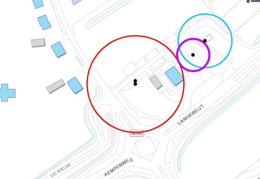 Figuur 3.5: Vulpunt LPG nieuwe situatie (middelpunt rode cirkel)